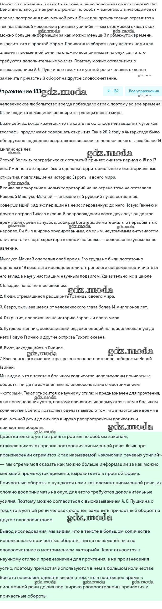ОТВЕТ на задание № 183 Учебник по Русскому языку 7 класс Баранов