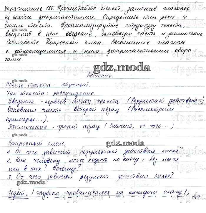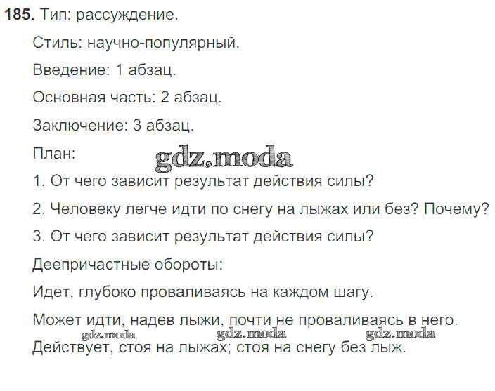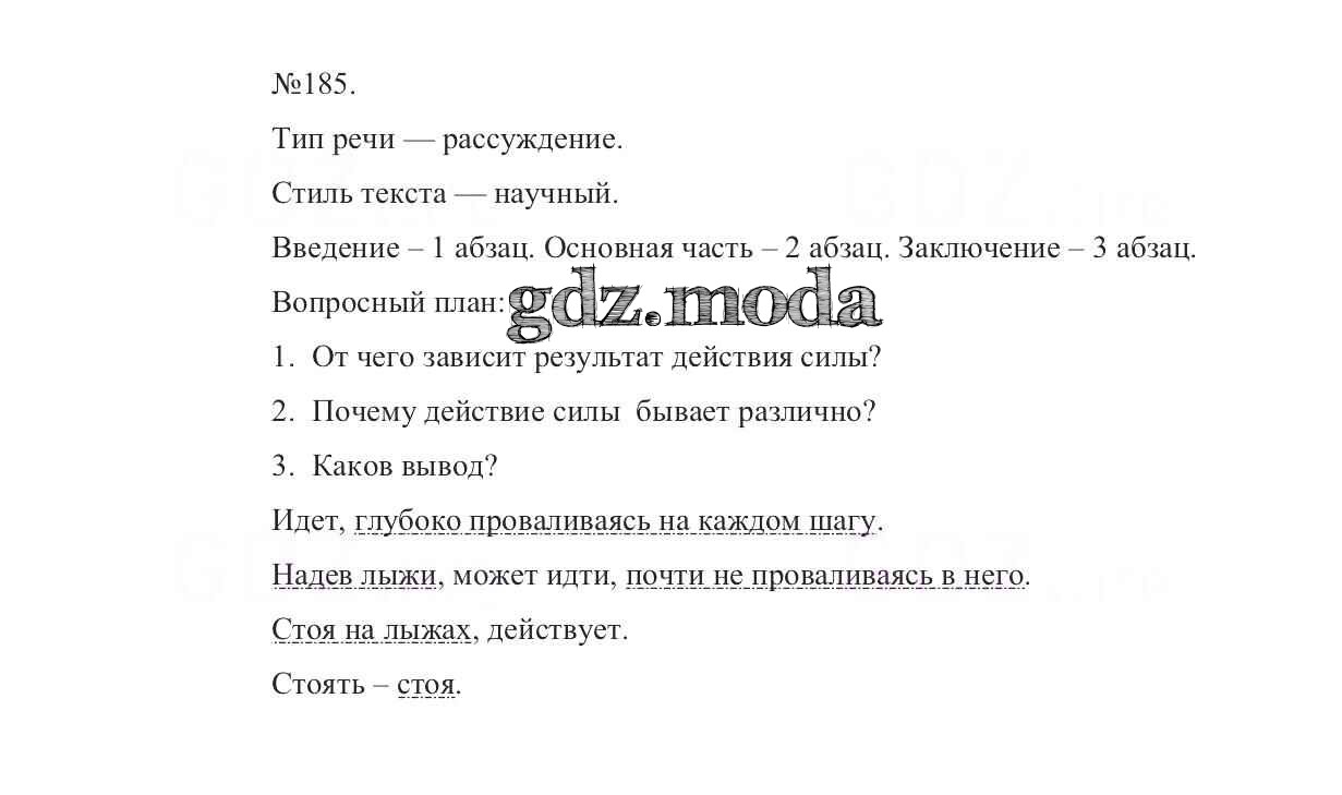 ОТВЕТ на задание № 185 Учебник по Русскому языку 7 класс Баранов УМК