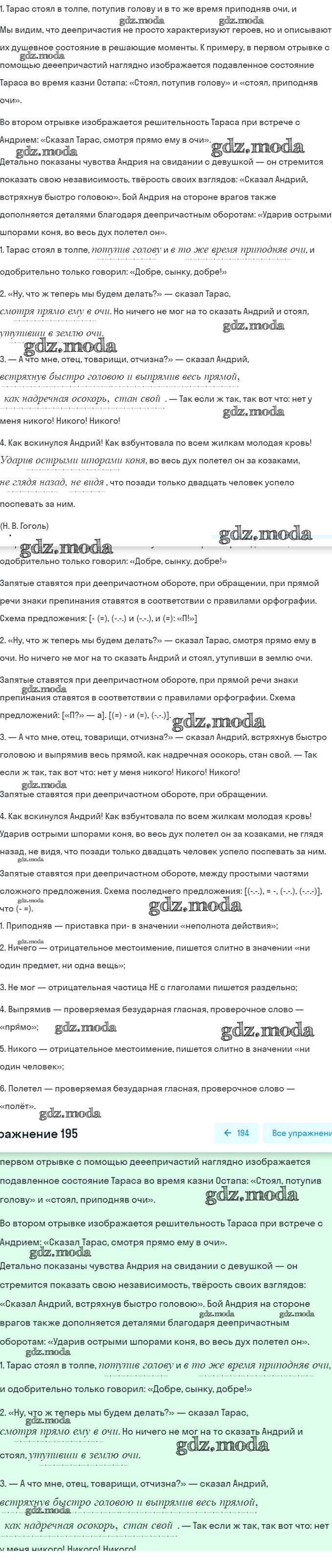 ОТВЕТ на задание № 195 Учебник по Русскому языку 7 класс Баранов
