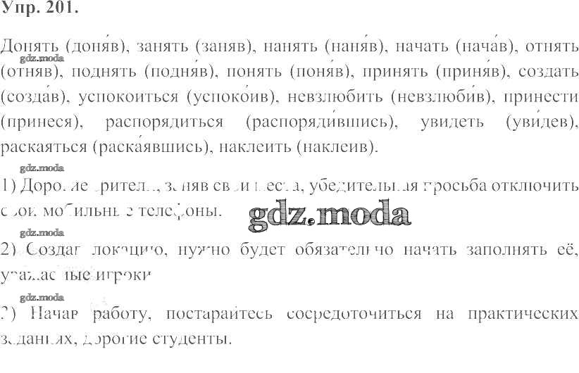 ОТВЕТ на задание № 201 Учебник по Русскому языку 7 класс Баранов УМК