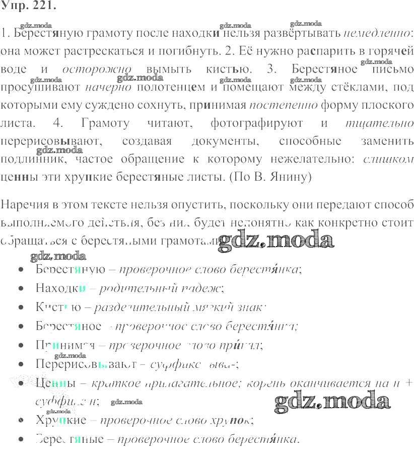 ОТВЕТ на задание № 221 Учебник по Русскому языку 7 класс Баранов УМК