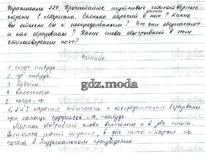 ОТВЕТ на задание № 229 Учебник по Русскому языку 7 класс Баранов УМК