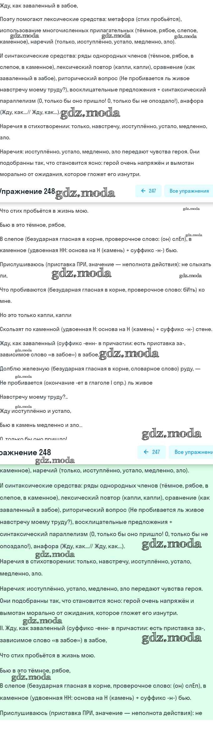 ОТВЕТ на задание № 248 Учебник по Русскому языку 7 класс Баранов