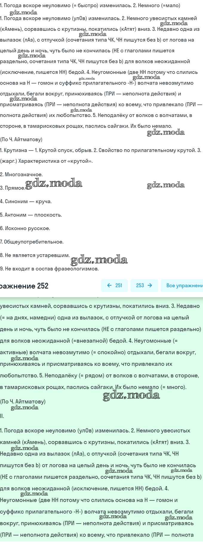 ОТВЕТ на задание № 252 Учебник по Русскому языку 7 класс Баранов