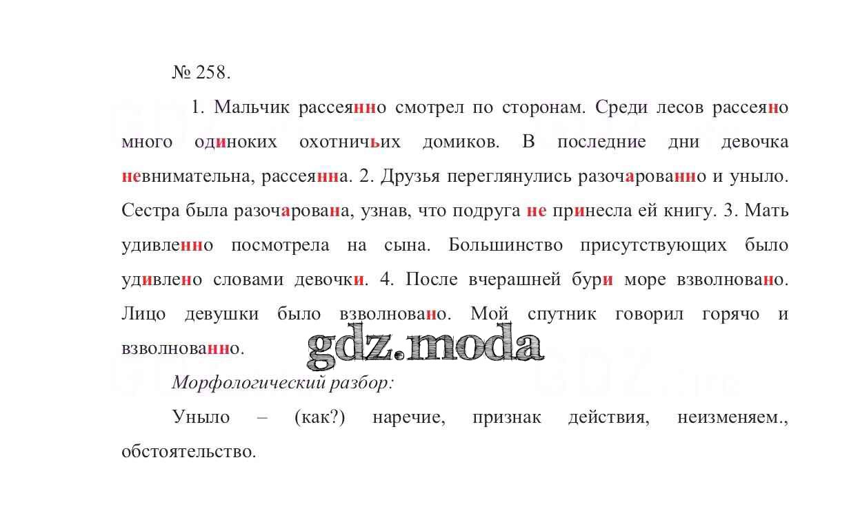 ОТВЕТ на задание № 258 Учебник по Русскому языку 7 класс Баранов УМК