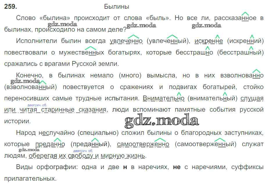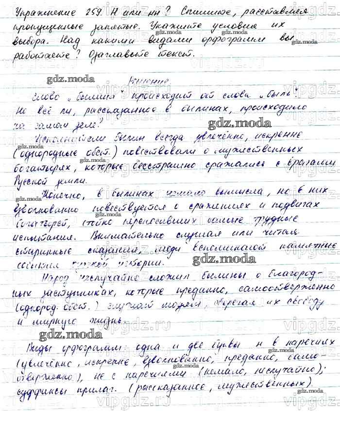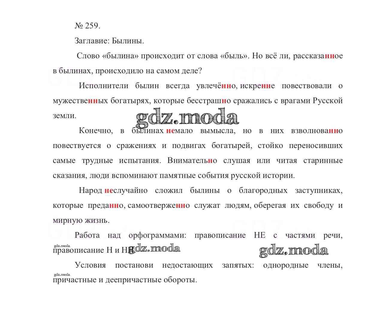 ОТВЕТ на задание № 259 Учебник по Русскому языку 7 класс Баранов УМК