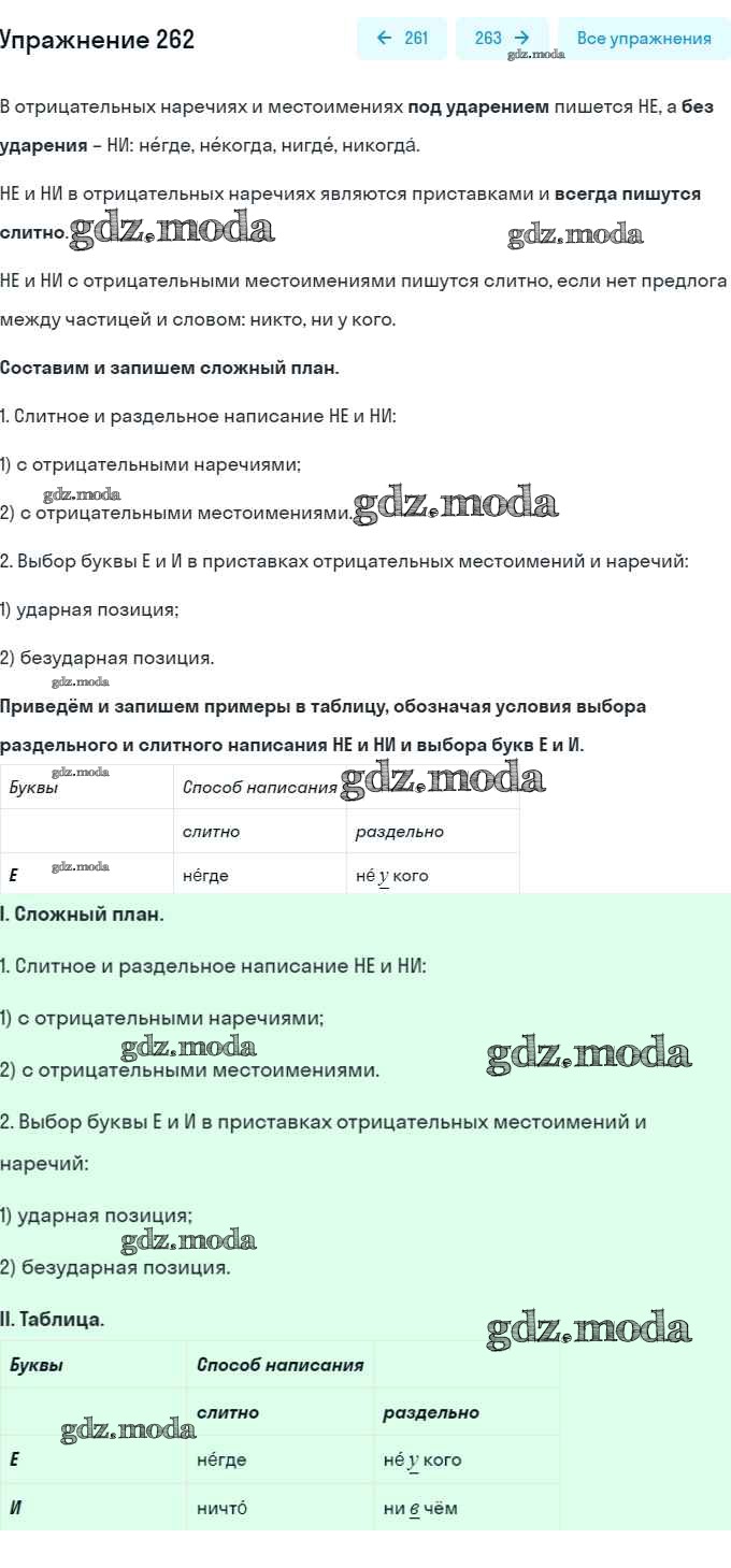 ОТВЕТ на задание № 262 Учебник по Русскому языку 7 класс Баранов