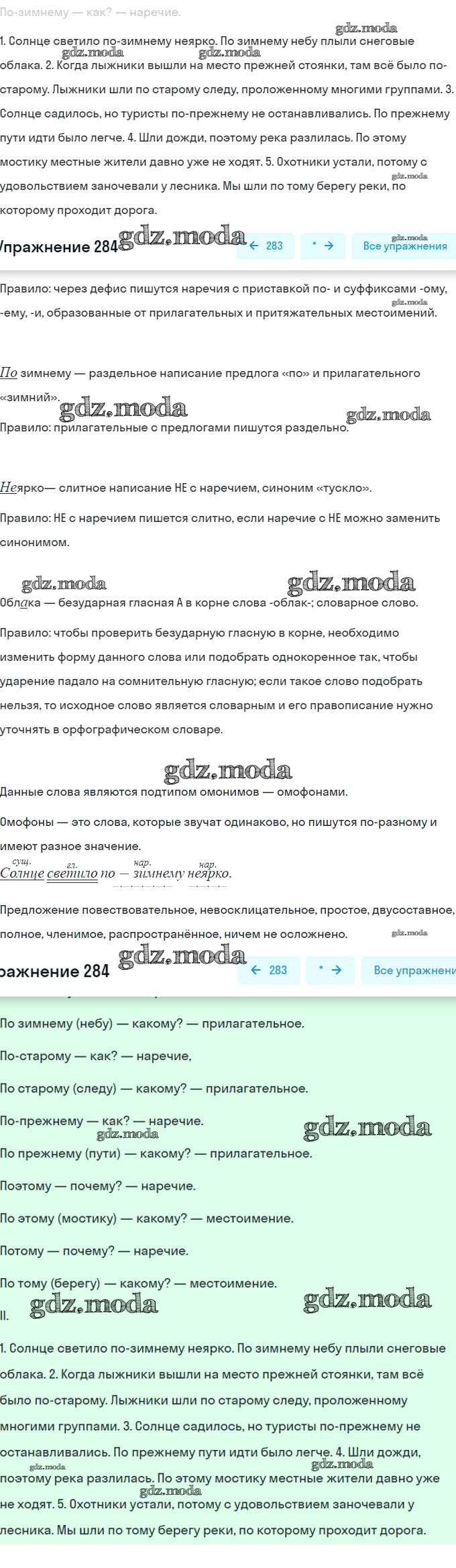 ОТВЕТ на задание № 284 Учебник по Русскому языку 7 класс Баранов