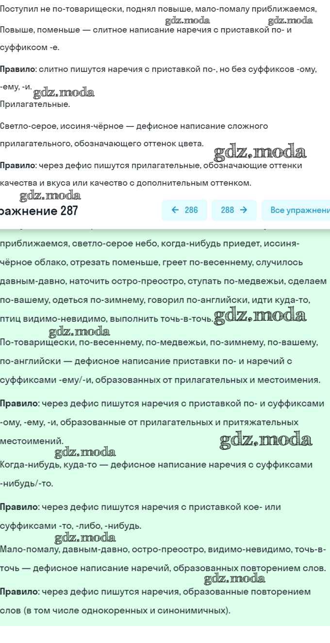 ОТВЕТ на задание № 287 Учебник по Русскому языку 7 класс Баранов