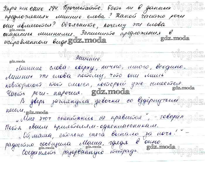 ОТВЕТ на задание № 294 Учебник по Русскому языку 7 класс Баранов УМК