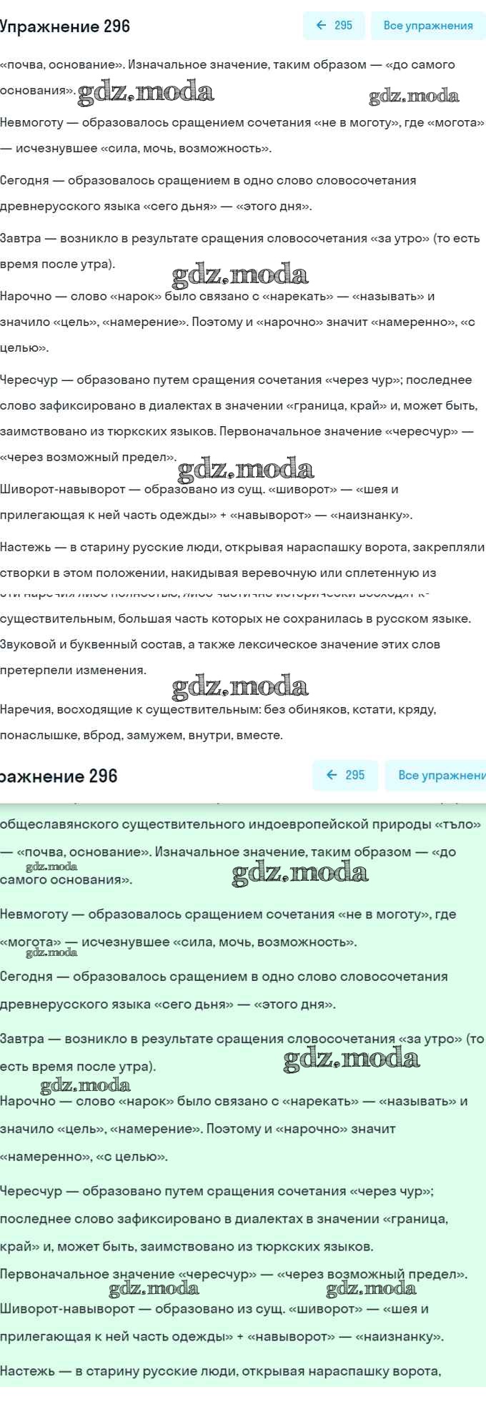 ОТВЕТ на задание № 296 Учебник по Русскому языку 7 класс Баранов