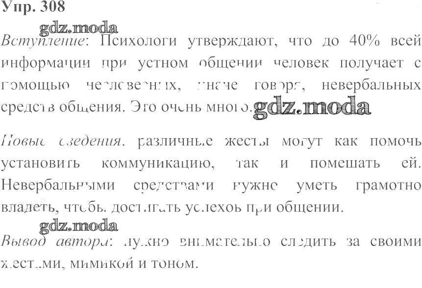 ОТВЕТ на задание № 308 Учебник по Русскому языку 7 класс Баранов УМК