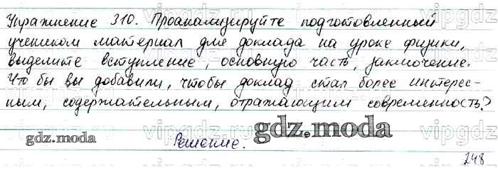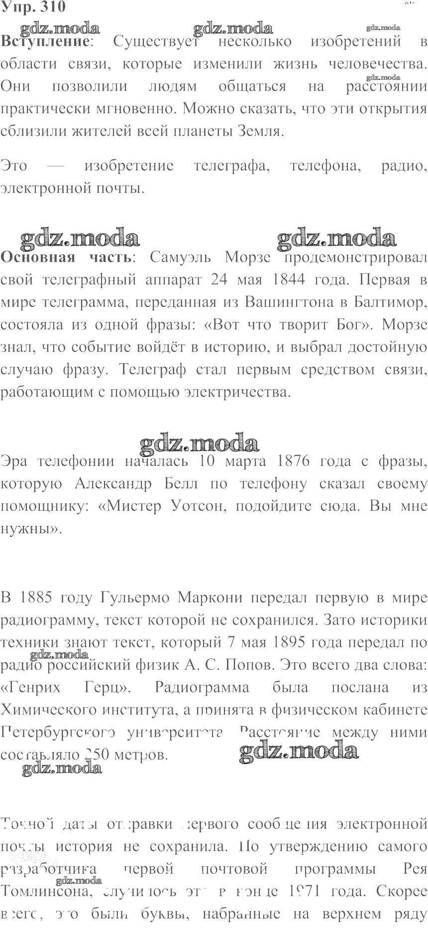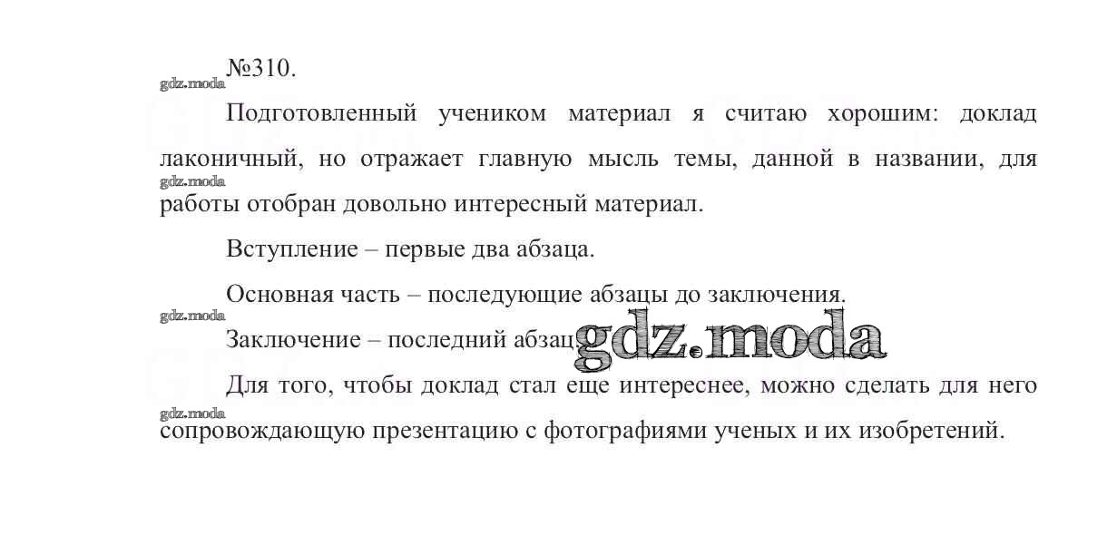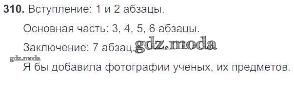 ОТВЕТ на задание № 310 Учебник по Русскому языку 7 класс Баранов УМК