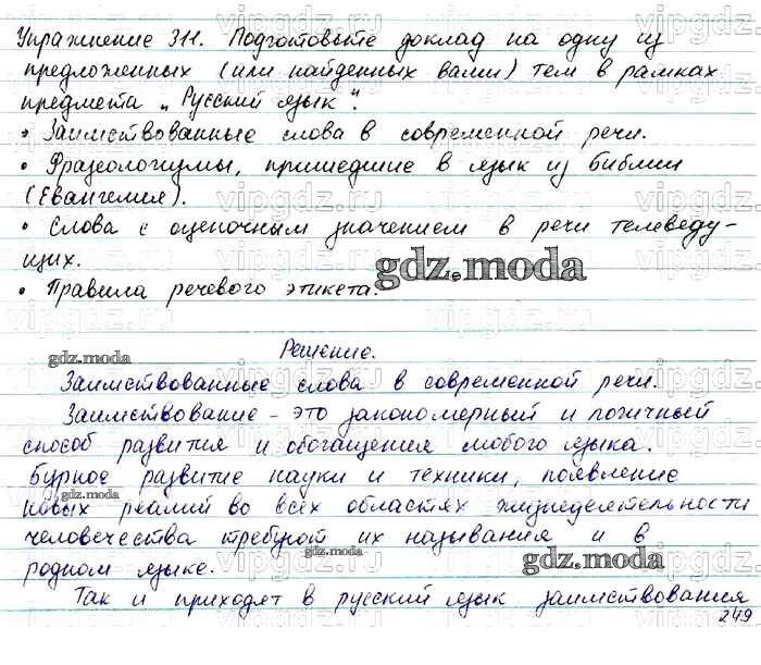 ОТВЕТ на задание № 311 Учебник по Русскому языку 7 класс Баранов УМК