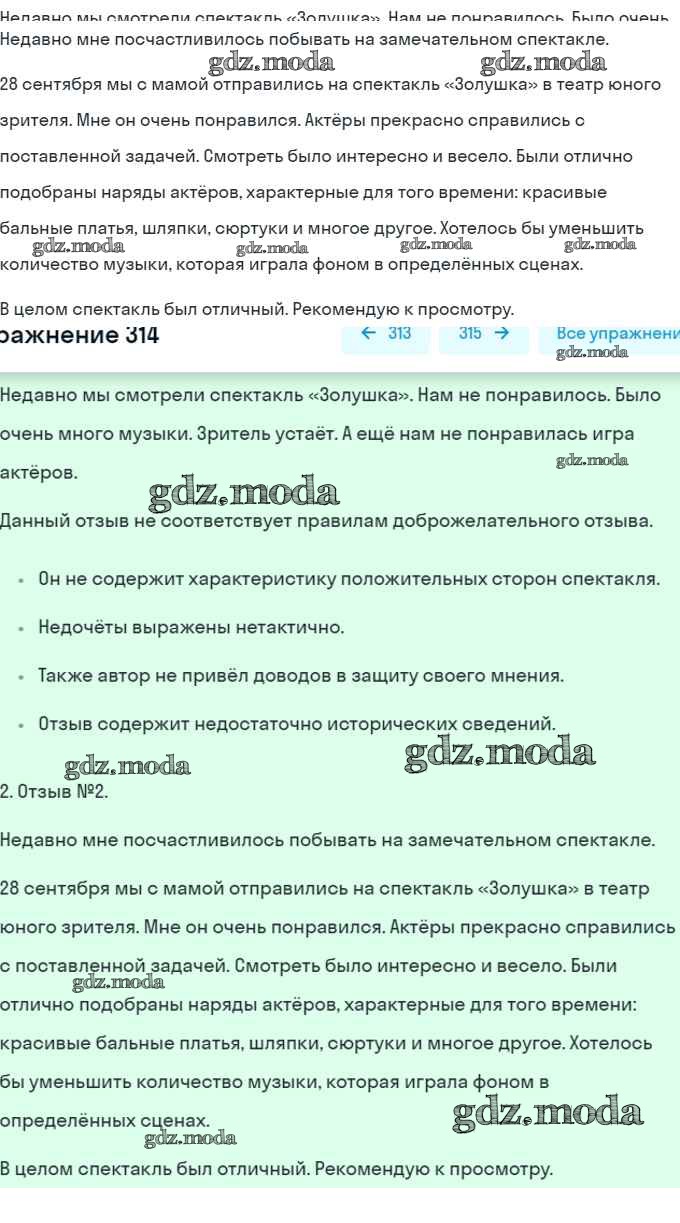 ОТВЕТ на задание № 314 Учебник по Русскому языку 7 класс Баранов