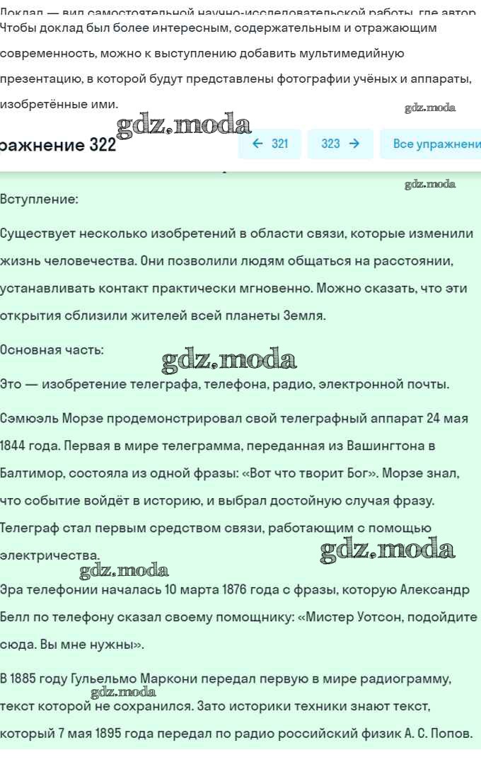 ОТВЕТ на задание № 322 Учебник по Русскому языку 7 класс Баранов
