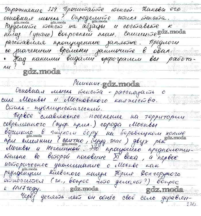 ОТВЕТ на задание № 329 Учебник по Русскому языку 7 класс Баранов УМК