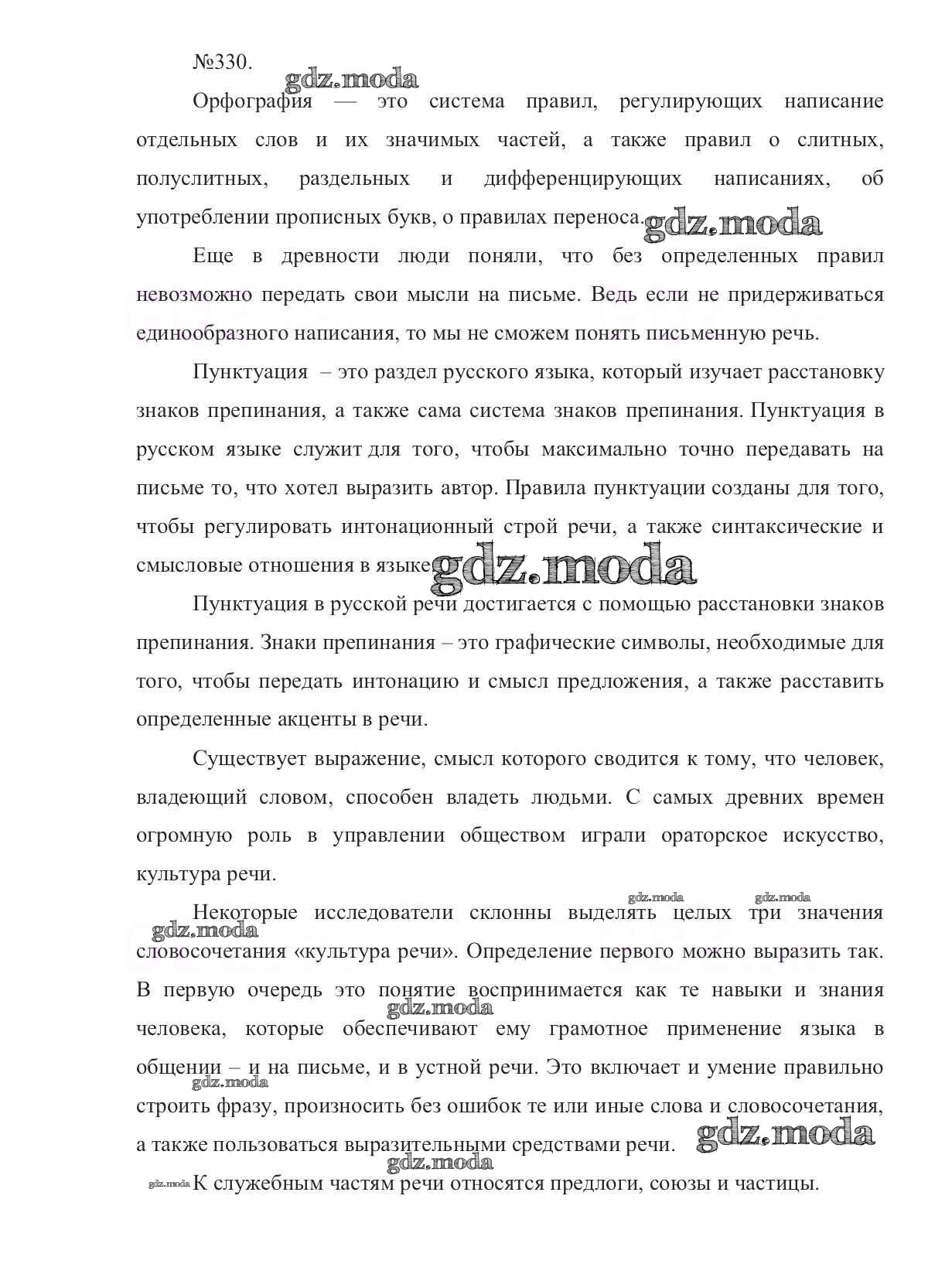 ОТВЕТ на задание № 330 Учебник по Русскому языку 7 класс Баранов