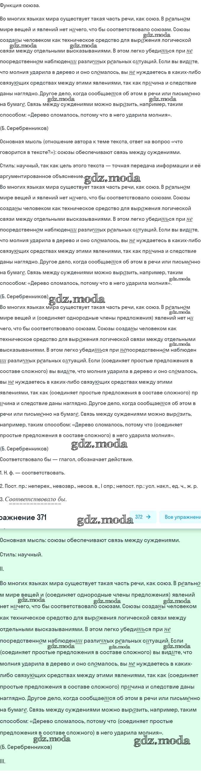 ОТВЕТ на задание № 371 Учебник по Русскому языку 7 класс Баранов