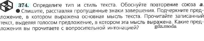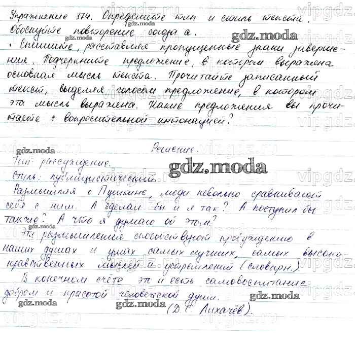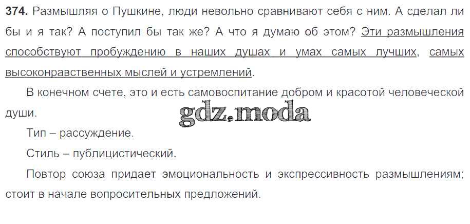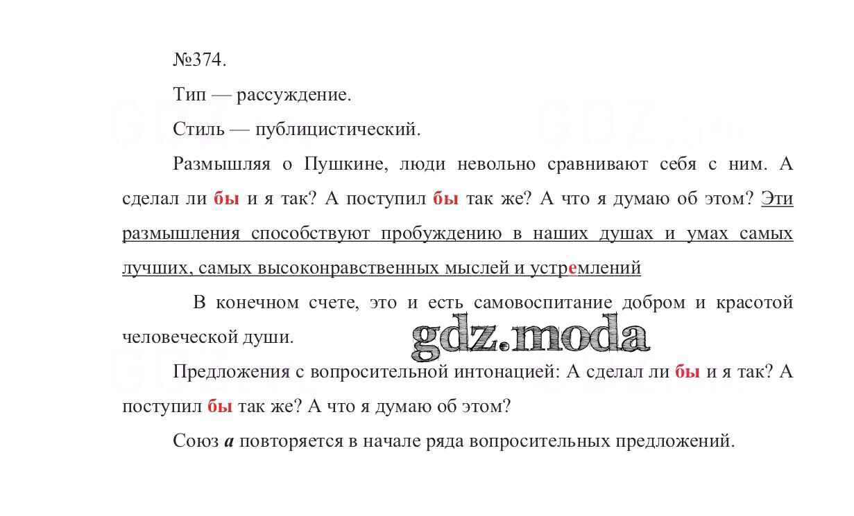ОТВЕТ на задание № 374 Учебник по Русскому языку 7 класс Баранов УМК