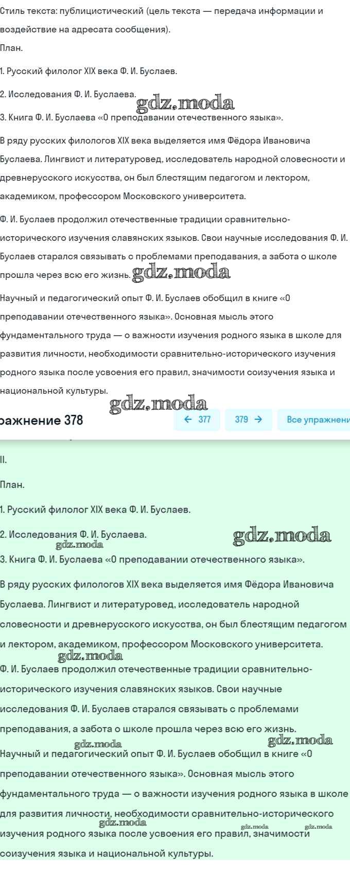 ОТВЕТ на задание № 378 Учебник по Русскому языку 7 класс Баранов