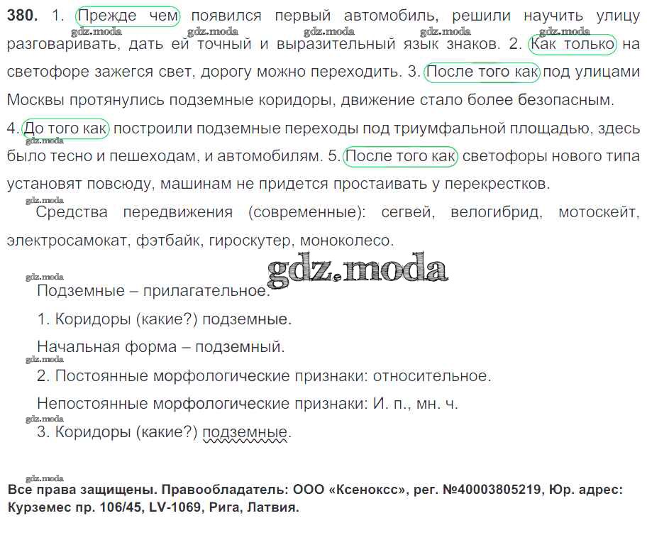 ОТВЕТ на задание № 380 Учебник по Русскому языку 7 класс Баранов УМК