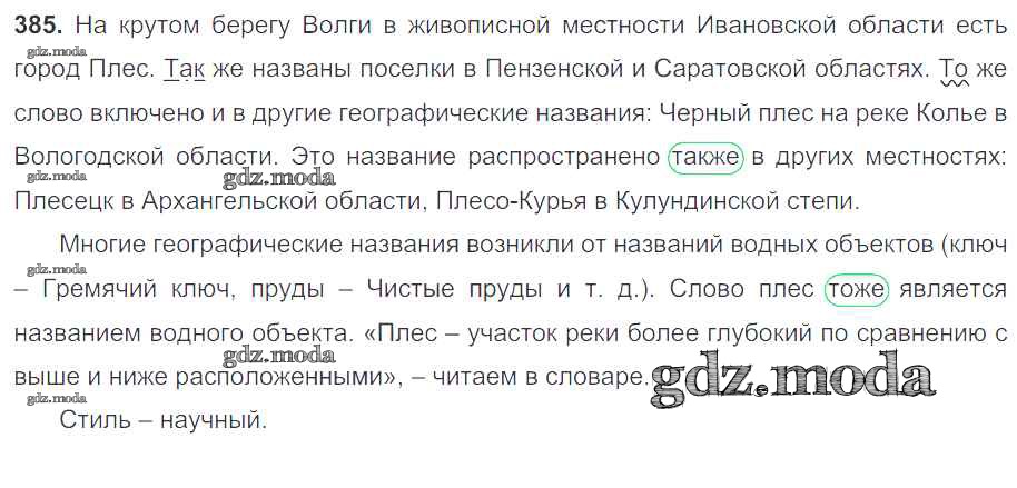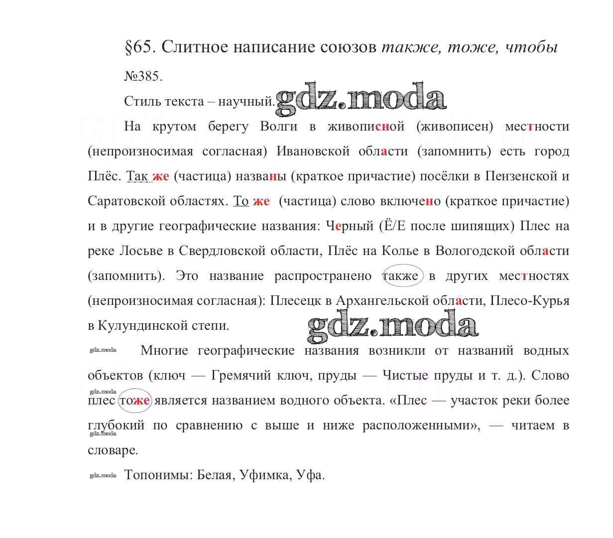ОТВЕТ на задание № 385 Учебник по Русскому языку 7 класс Баранов УМК