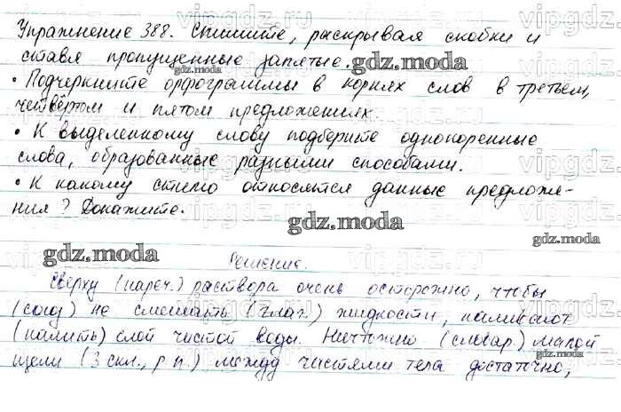 ОТВЕТ на задание № 388 Учебник по Русскому языку 7 класс Баранов УМК