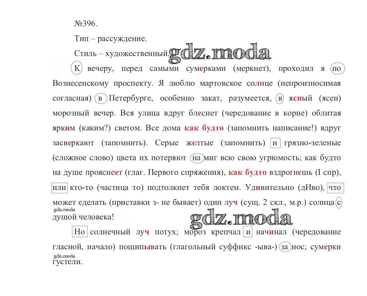 ОТВЕТ на задание № 396 Учебник по Русскому языку 7 класс Баранов УМК