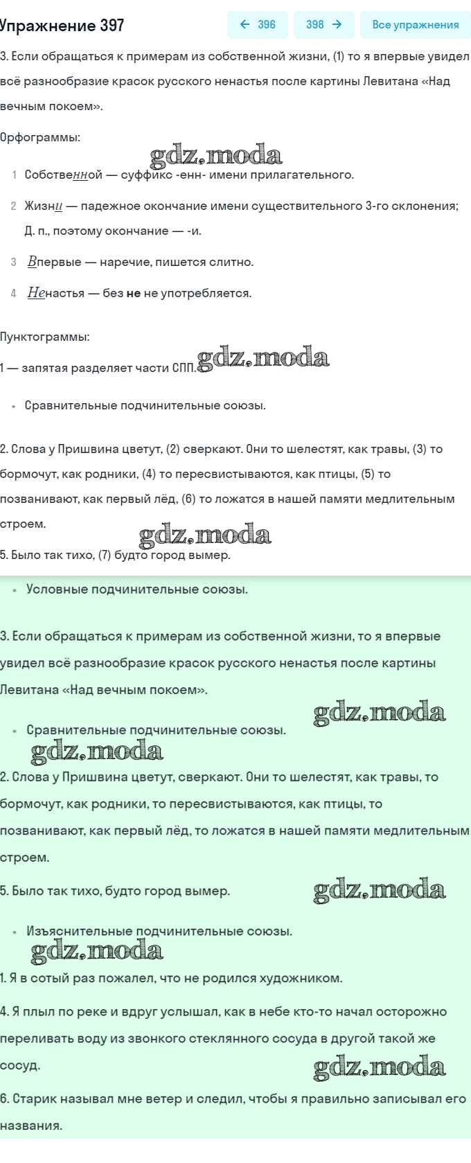 ОТВЕТ на задание № 397 Учебник по Русскому языку 7 класс Баранов
