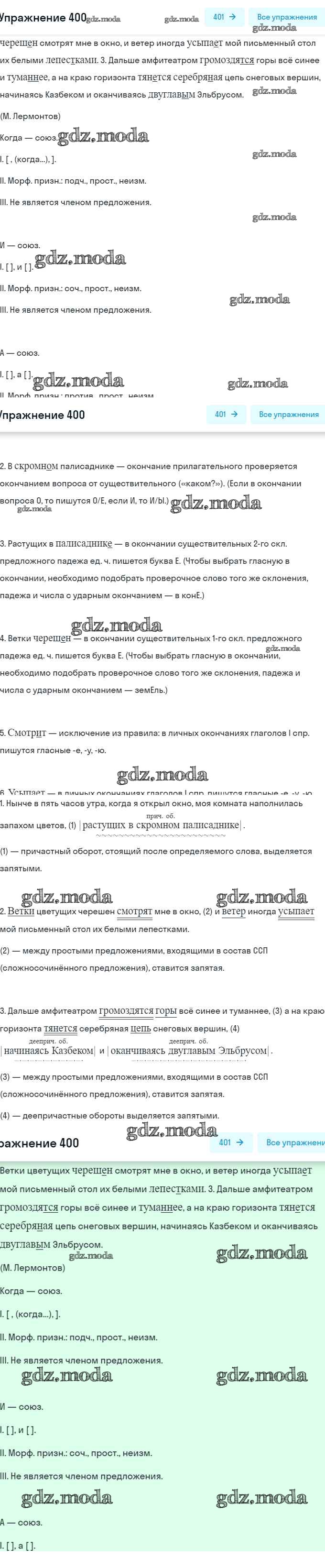 ОТВЕТ на задание № 400 Учебник по Русскому языку 7 класс Баранов