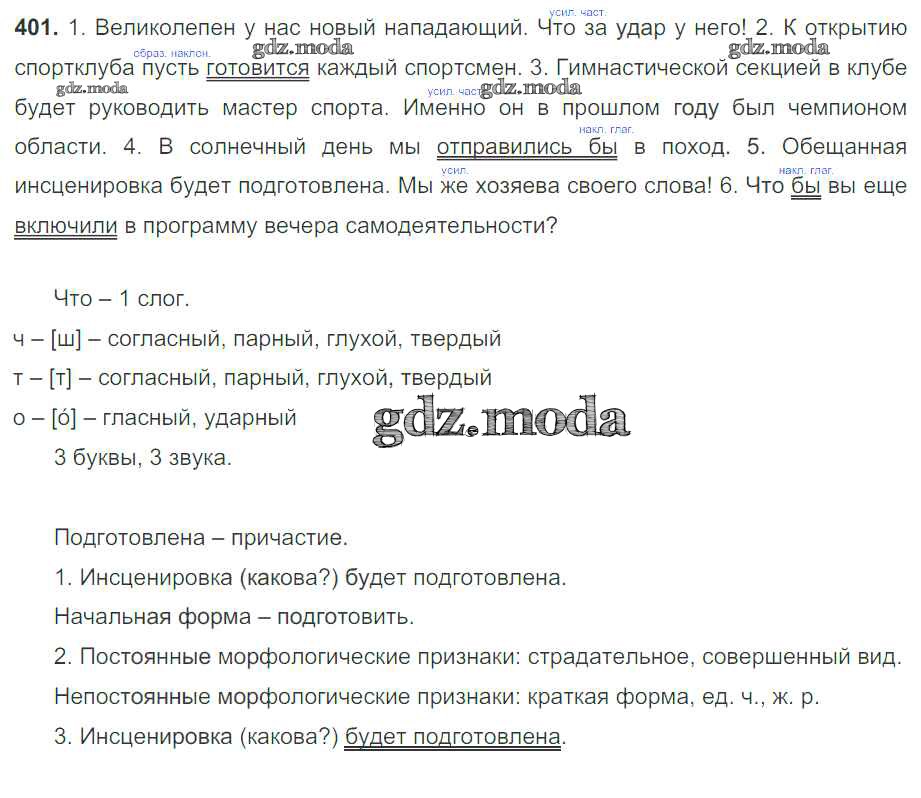 ОТВЕТ на задание № 401 Учебник по Русскому языку 7 класс Баранов УМК