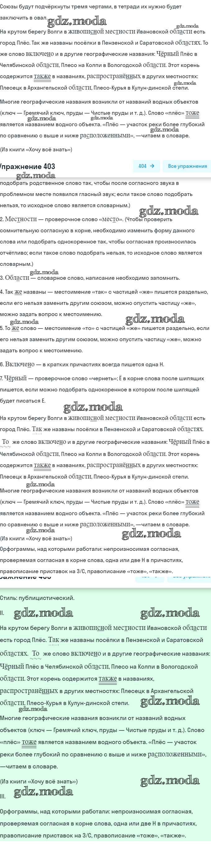 ОТВЕТ на задание № 403 Учебник по Русскому языку 7 класс Баранов