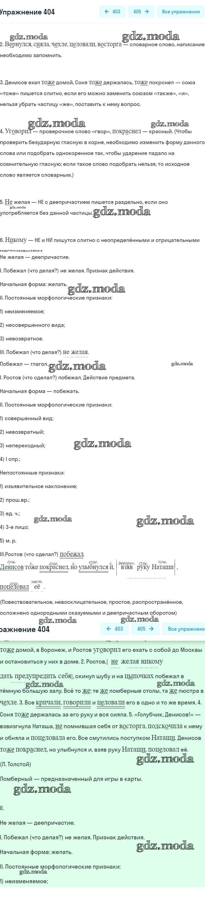 ОТВЕТ на задание № 404 Учебник по Русскому языку 7 класс Баранов