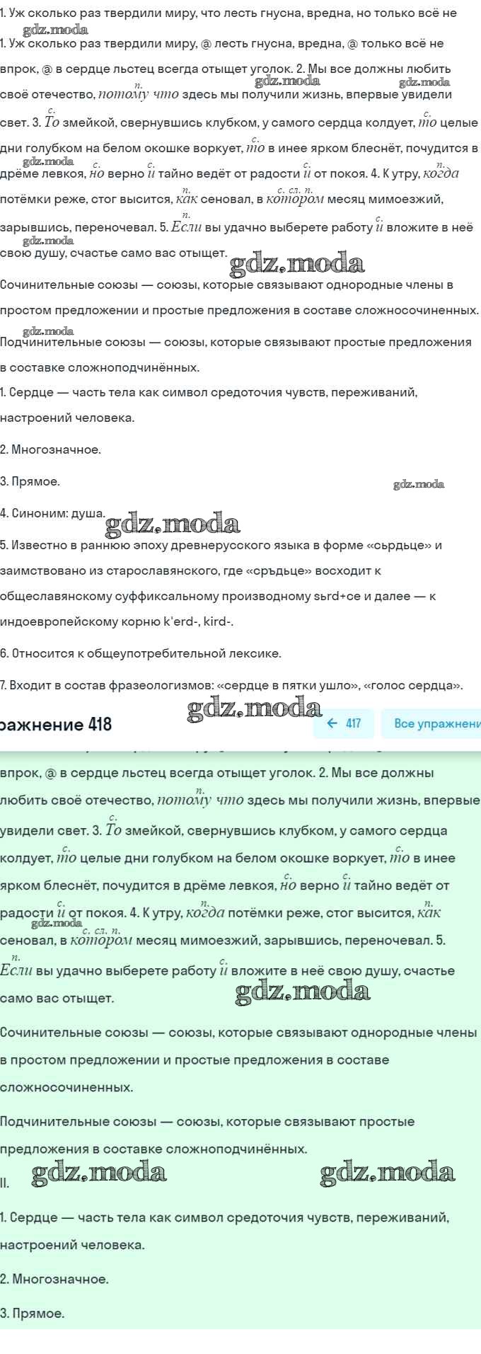 ОТВЕТ на задание № 418 Учебник по Русскому языку 7 класс Баранов