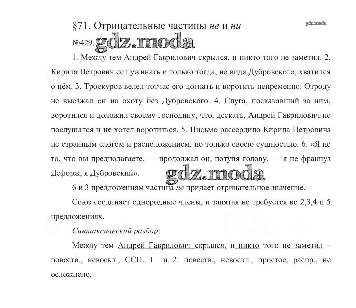 ОТВЕТ на задание № 429 Учебник по Русскому языку 7 класс Баранов УМК