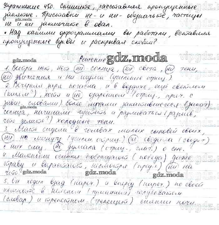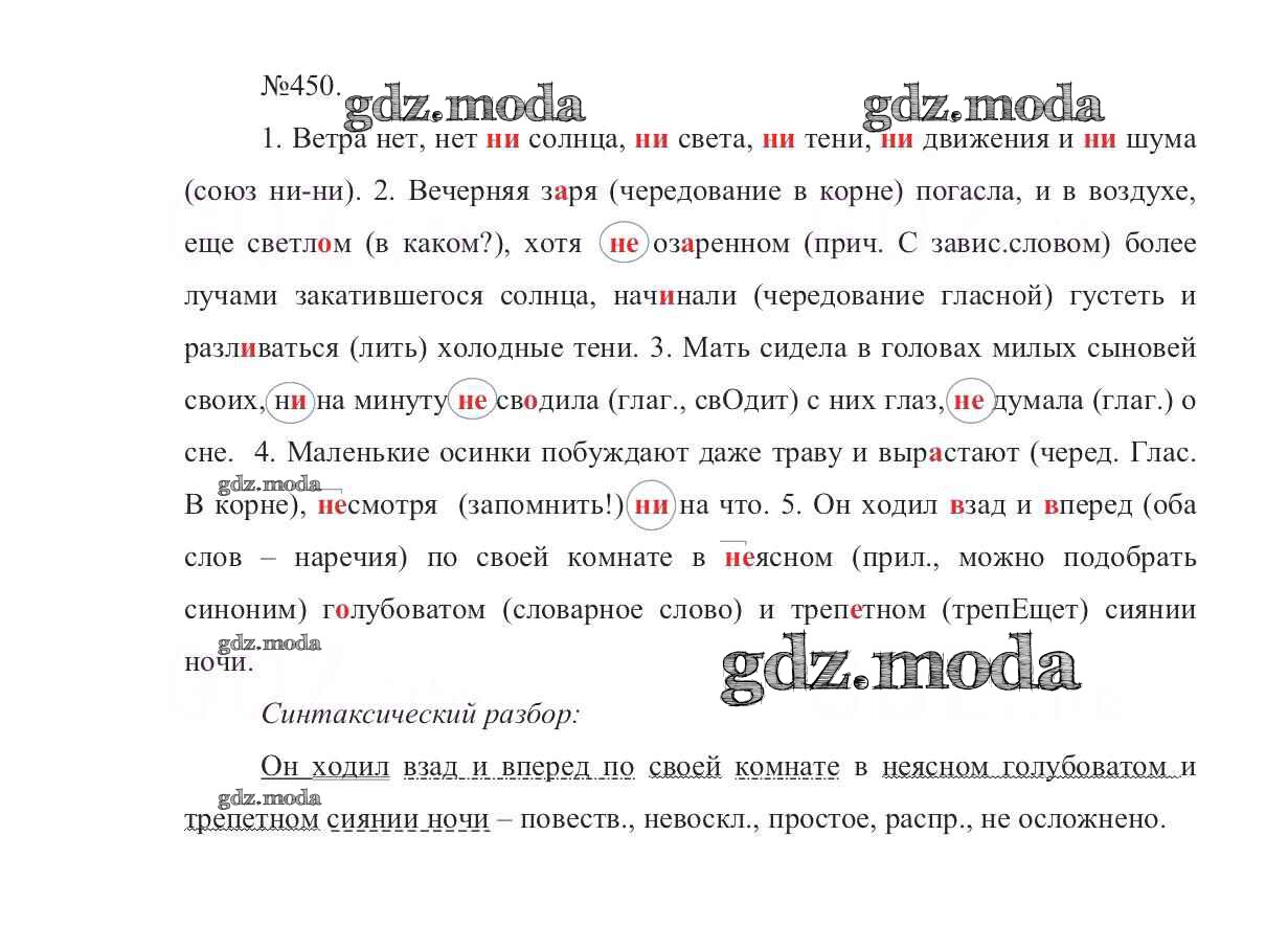 ОТВЕТ на задание № 450 Учебник по Русскому языку 7 класс Баранов УМК