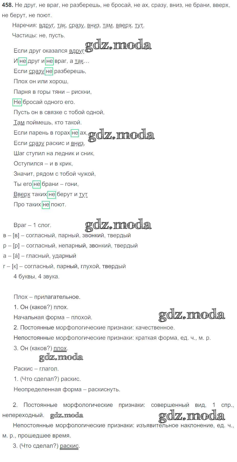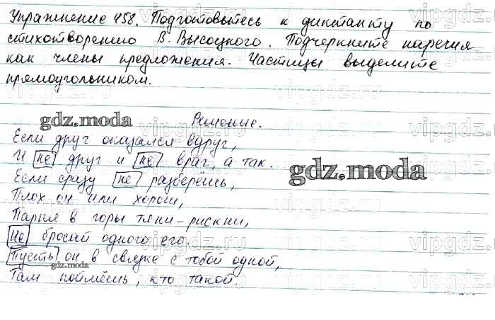 ОТВЕТ на задание № 458 Учебник по Русскому языку 7 класс Баранов УМК