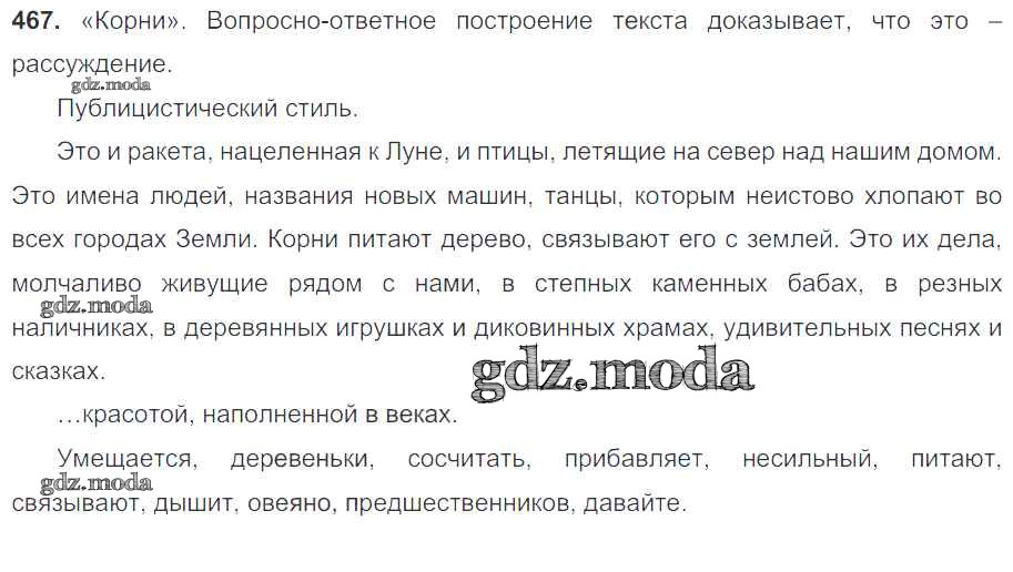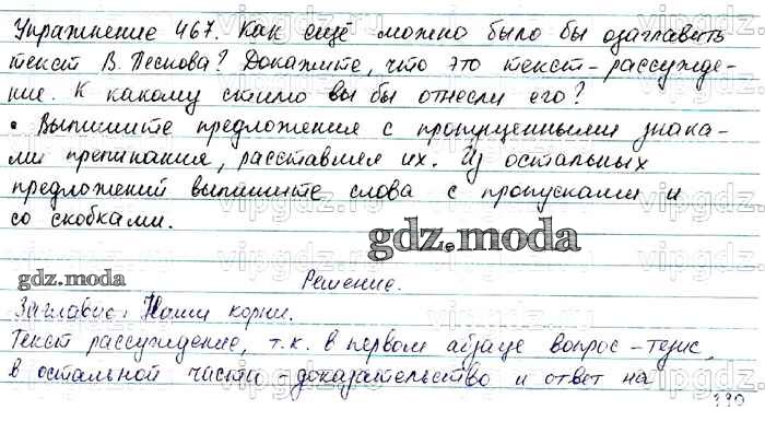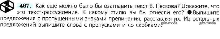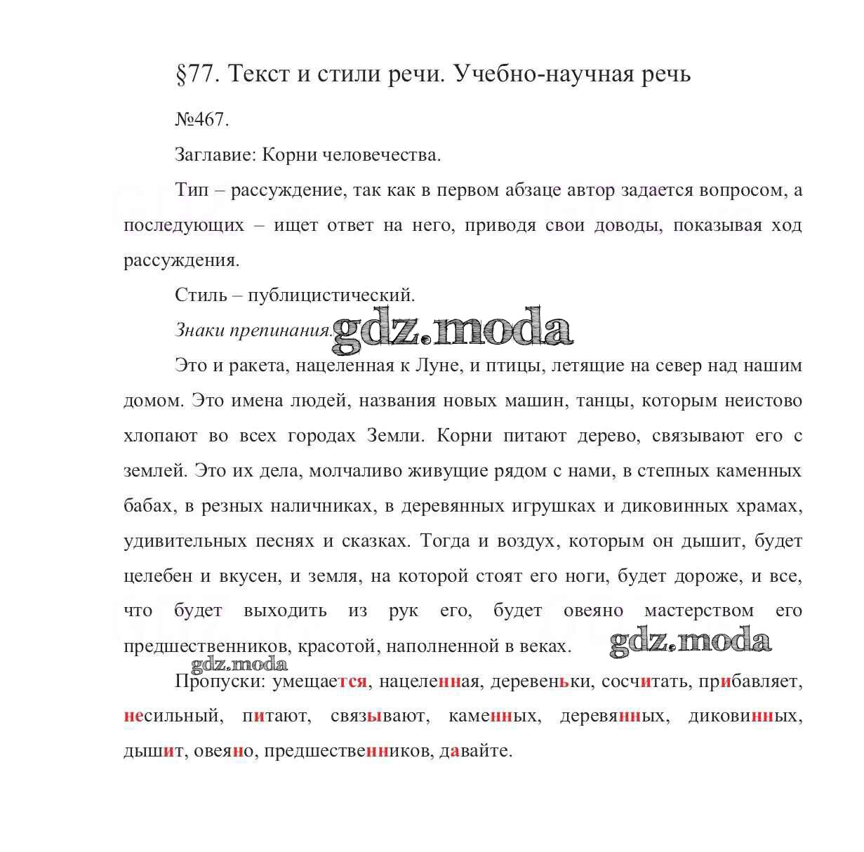 ОТВЕТ на задание № 467 Учебник по Русскому языку 7 класс Баранов УМК