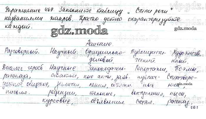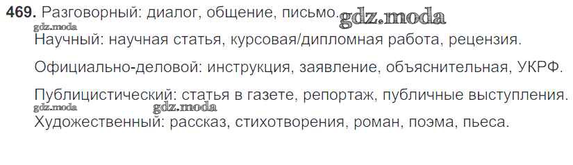 ОТВЕТ на задание № 469 Учебник по Русскому языку 7 класс Баранов УМК