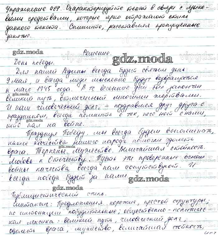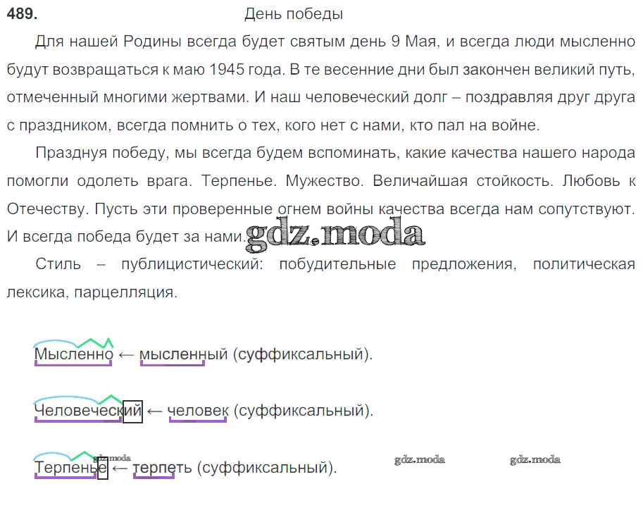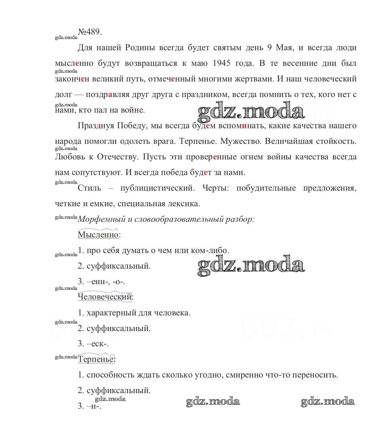 ОТВЕТ на задание № 489 Учебник по Русскому языку 7 класс Баранов УМК