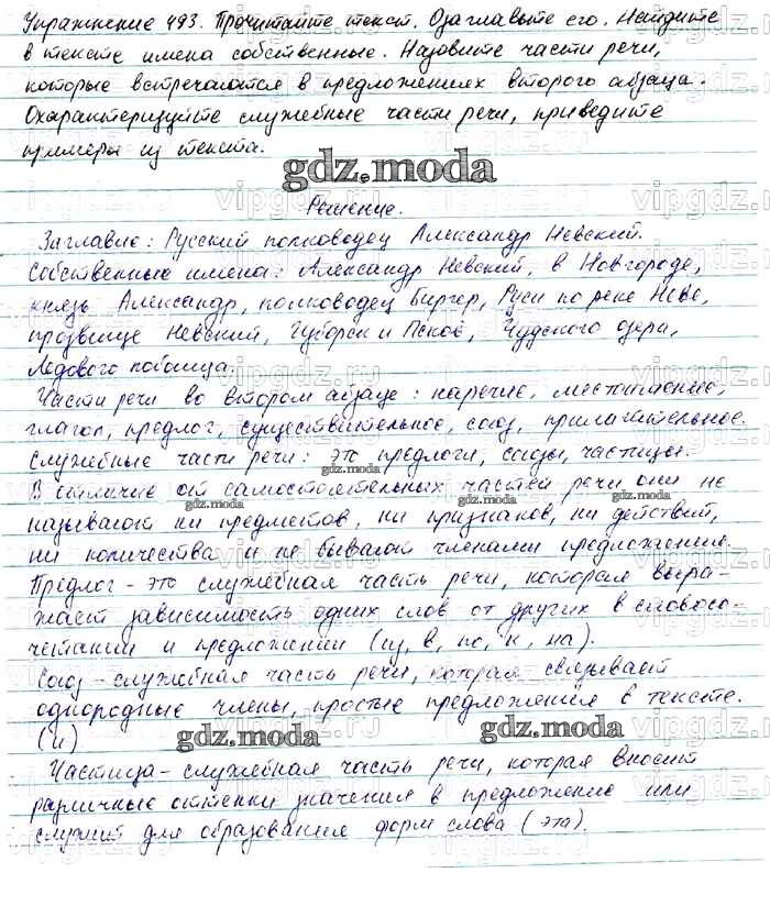ОТВЕТ на задание № 493 Учебник по Русскому языку 7 класс Баранов УМК