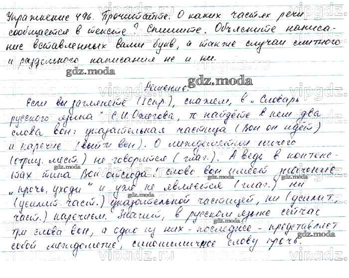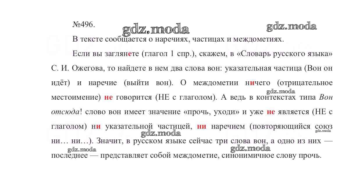 ОТВЕТ на задание № 496 Учебник по Русскому языку 7 класс Баранов УМК