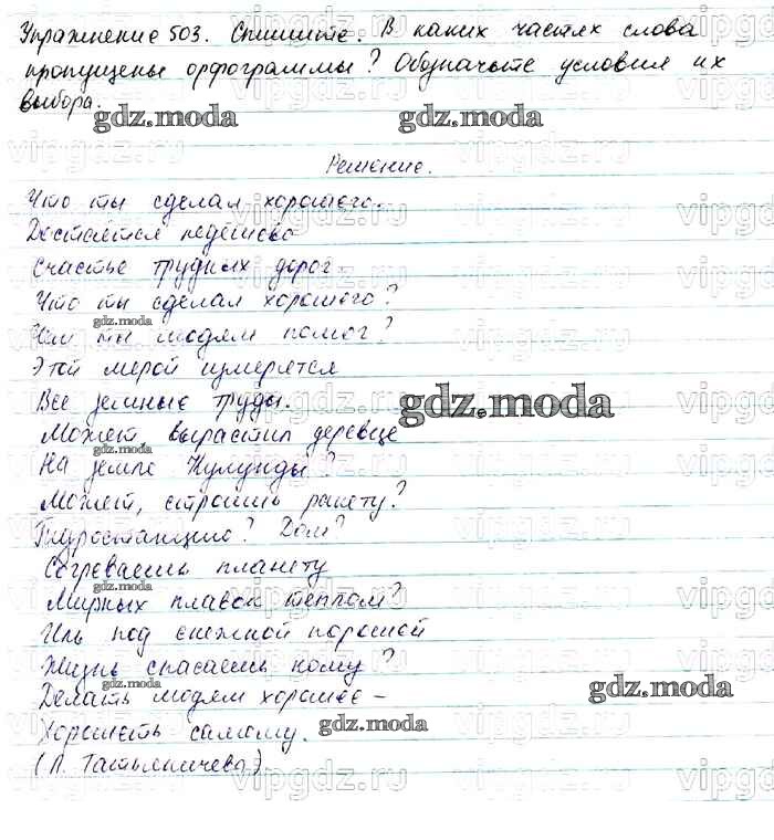 ОТВЕТ на задание № 503 Учебник по Русскому языку 7 класс Баранов УМК