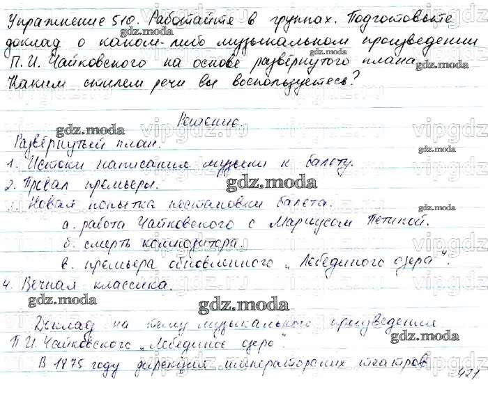 ОТВЕТ на задание № 510 Учебник по Русскому языку 7 класс Баранов УМК