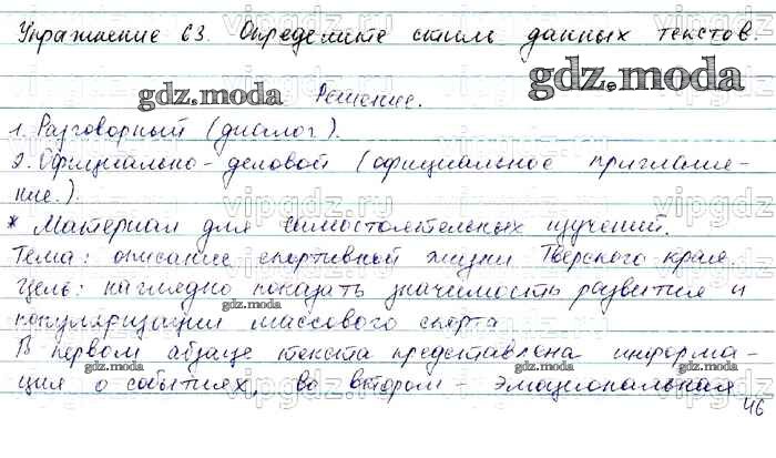 ОТВЕТ на задание № 63 Учебник по Русскому языку 7 класс Баранов УМК