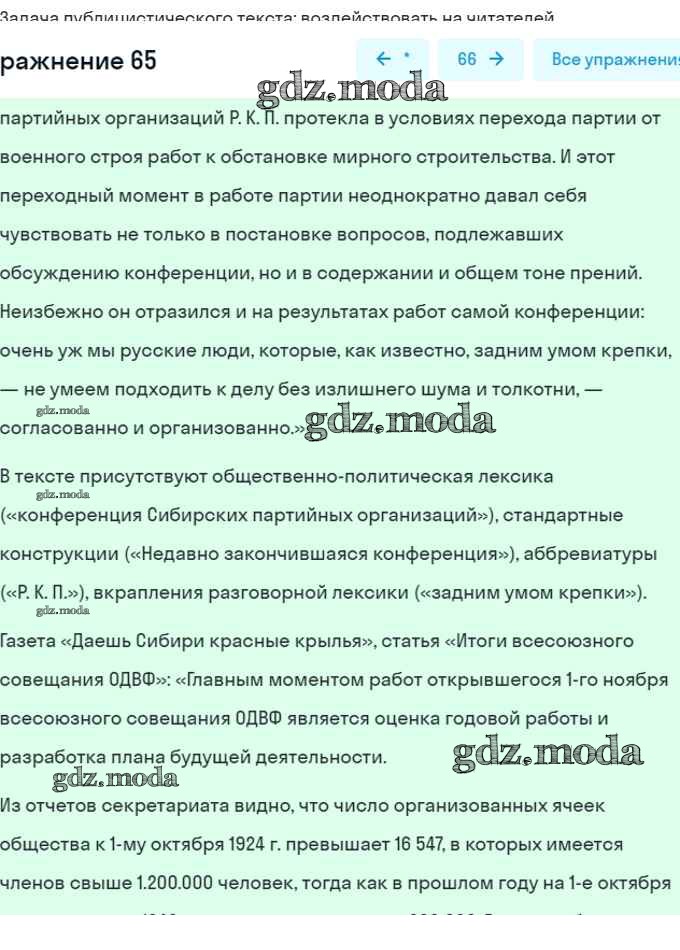 ОТВЕТ на задание № 65 Учебник по Русскому языку 7 класс Баранов