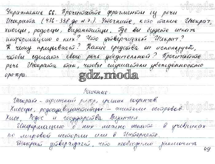 ОТВЕТ на задание № 66 Учебник по Русскому языку 7 класс Баранов УМК