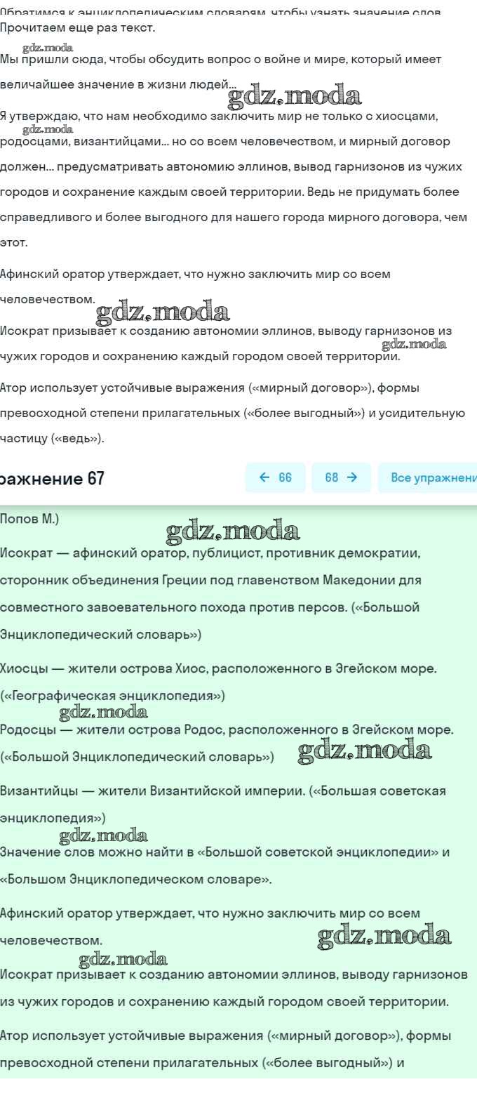 ОТВЕТ на задание № 67 Учебник по Русскому языку 7 класс Баранов