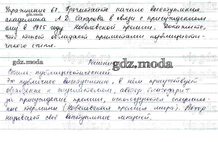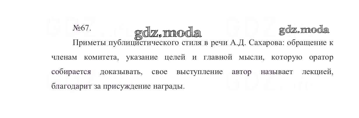 ОТВЕТ на задание № 67 Учебник по Русскому языку 7 класс Баранов УМК